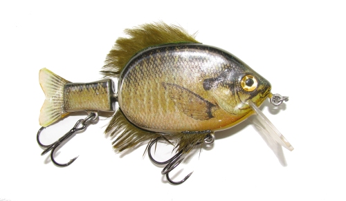 The Bettencourt Real Fish series was released in Januray 2005. The Real Fish Bluegill comes in two weights, a floater that weighs 1 and 1/4oz and a sinking version that weighs 1 and 3/4oz. Both models measure approximately 5” in length and have a squared diving bill that angles outward at the tip of the lip. Like several other baits in the Bettencourt Bait’s lineup, the Bluegill features fur fins and comes standard .072 Stainless Eye screws, 2x stainless 100lb split rings and VMC's 3x Big Game hooks.