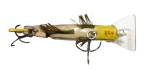 This series of baits made by Nathan Bettencourt are one of the first, if not the very first, commercially produced baits to incorporate what people call the ‘photo finish’ technique. Instead of a painted finish, a photograph of a real bluegill is modified to fit on top of the lure and then sealed in with epoxy. The result of course is an extremely natural coloration. I like the finish on the bluegill a great deal, and it is really amazing that these baits only go for $39.95 considering the amount of custom work required to make each lure.