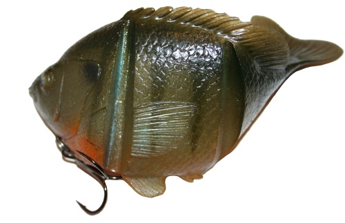 The Platinum Sunfish may look like a lure that would be hard to hook fish on, however the body is actually quite soft. Bass should have no problem inhaling this lure in a way that causes the lure to fold up as it goes in to the fish's mouth. All of the reports I've heard on this bait indicate that hooking and landing the fish is not an issue, so despite the overall size of the lure, I don't see the Sunfish as a bait that is going to require a trap hook in most situations.