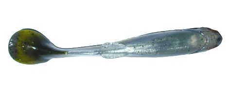 Pros: When you look at the photos above that show the bottom of the lure, you'll notice that the tail is very large compared with the thin body of the bait.  This, combined with the narrow taper of the tail, gives the lure a tremendous amount of kick.  If you ever had one of the old Worm King Dinosaur swimbaits, this bait has a similar tail action because it kicks so far to each side that the tail starts to wrap up around itself in either direction.  What the means fishing wise is that you can fish the lure very slowly and it will keep kicking.  And if you do speed it up, it has a pretty spastic tail action.  Either way, the tail design gives you a lot of retrieve speed options and both the baits I have ran true at all speeds.